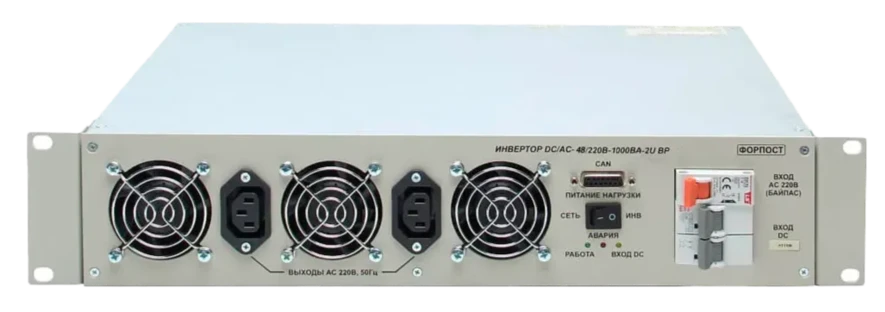 Инвертор DC/AC-48(60)/220B-1000BA-2U ВР обеспечивает надежное электропитание телекоммуникационного оборудования и различной электронной аппаратуры, которые потребляют мощность не более 1000 ВА (или 667 Вт), преобразуя постоянный ток с номинальным напряжением 48(60) В в переменный ток высокого качества 220 В при частоте 50 Гц.