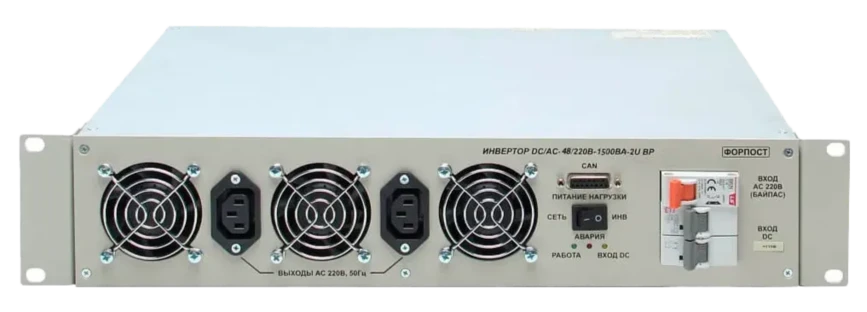 Инвертор DC/AC-48(60)/220B-1500BA-2U BP обеспечивает надежное электропитание телекоммуникационного оборудования и различной электронной аппаратуры, которые потребляют мощность не более 1500 ВА (или 1000 Вт), преобразуя постоянный ток с номинальным напряжением 48(60) В в переменный ток высокого качества 220 В при частоте 50 Гц.
