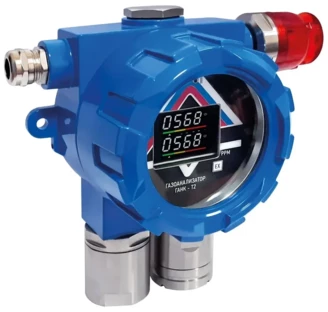 Газоанализатор одновременно контролирует уровень концентрации двух газов и выдает предупредительную сигнализации при превышении установленных пороговых значений.
