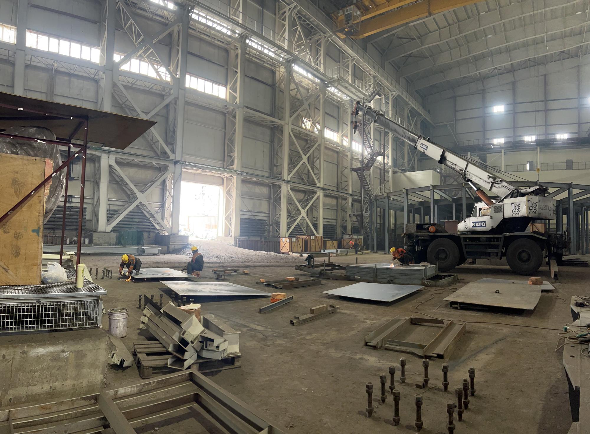 В настоящий момент устанавливается технологическое и нестандартизированное оборудование: насосы, накопители тяжёлых жидкостей — зумпфы и 2 чаши радиальных сгустителей. Работы проводятся силами китайского партнера.