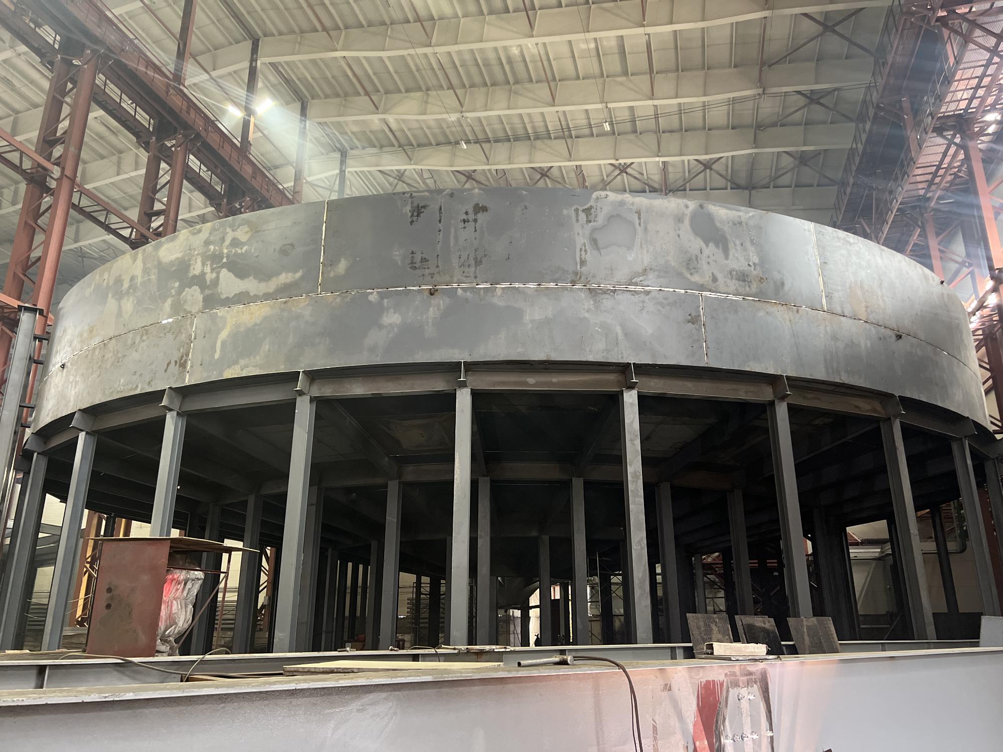 Следующий этап — сборка «этажерок», поддерживающих металлические конструкции обогатительного оборудования. По мере строительной готовности на каждой отметке последовательно смонтируют ленточные конвейеры, обезвоживающие центрифуги, грохоты и другое технологическое оборудование.